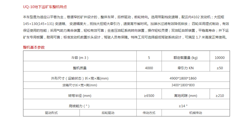 產品執(zhí)行標準:GB 21500-2008《地下礦用無軌輪胎式運礦車安全要求》